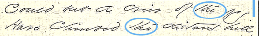 F124B wygląda na bliższe czystopisowi niż F124C, a litera T Emilii Dickinson rosłaby — a nie stawała się mniejsza — w miarę finalizowania przez nią tekstu. Możemy powrócić do Wyrzeczenia Little i Brown, dla słówek there, thought, czy that. Pismo nie jest tu tak swobodne, jak w próbce F124C.