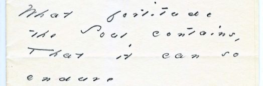 W internecie [3] możemy spojrzeć na próbkę F124C, szkic Bezpiecznych w alabastrowych swych izbach w Houghton, jednej z bibliotek Uniwersytetu Harvarda. To rękopis ołówkiem. Jeśli Emilia Dickinson używała takich dużych liter, musiał być powód. Obrazki mają wzmocniony kontrast.